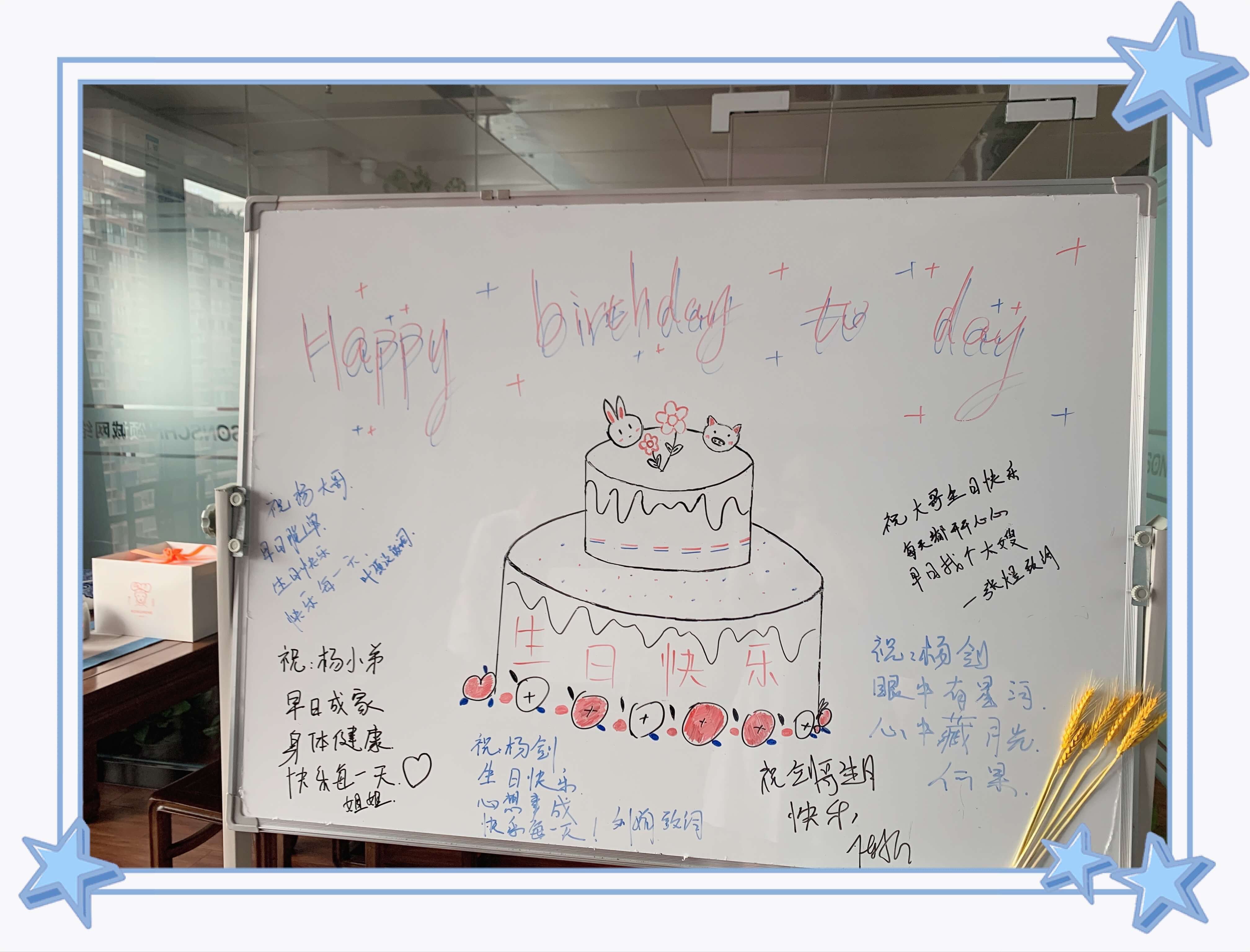 生日會(huì)上,何總首先對(duì)各位參加生日會(huì)的員工在工作中所付出的辛勞、努力和汗水表示感謝。同時(shí),他代表所有領(lǐng)導(dǎo)及全體員工為壽星送上了美好的祝福。何總表示“員工為本”是頌誠(chéng)網(wǎng)絡(luò)一直以來(lái)所倡導(dǎo)的企業(yè)文化,日后公司將根據(jù)員工生日的時(shí)間舉辦形式多樣的生日活動(dòng),讓大家即使在頌誠(chéng)網(wǎng)絡(luò)工作,也同樣能感受到公司給予的關(guān)懷。活動(dòng)期間,大家一起在白板上作畫(huà)寫(xiě)字,留下對(duì)壽星的祝福話語(yǔ);一起唱生日快樂(lè)歌,沉浸在這快樂(lè)的氛圍中。